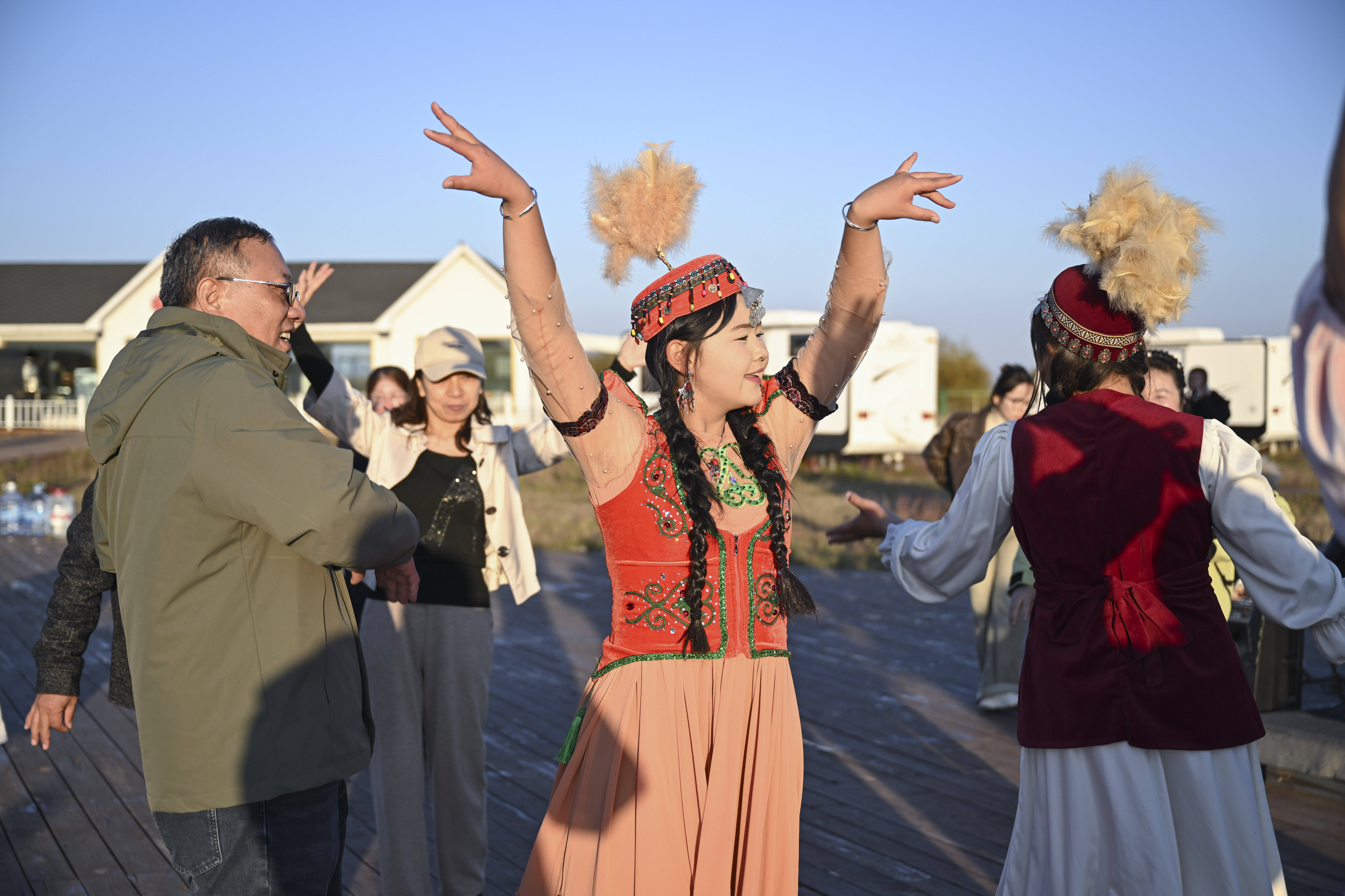 “过中秋,就是要团团圆圆。”叶尔柯布兰高兴得手舞足蹈。除了盛装出席的父母和弟弟,她还喊来了好朋友,带着冬不拉,为大家表演助兴。